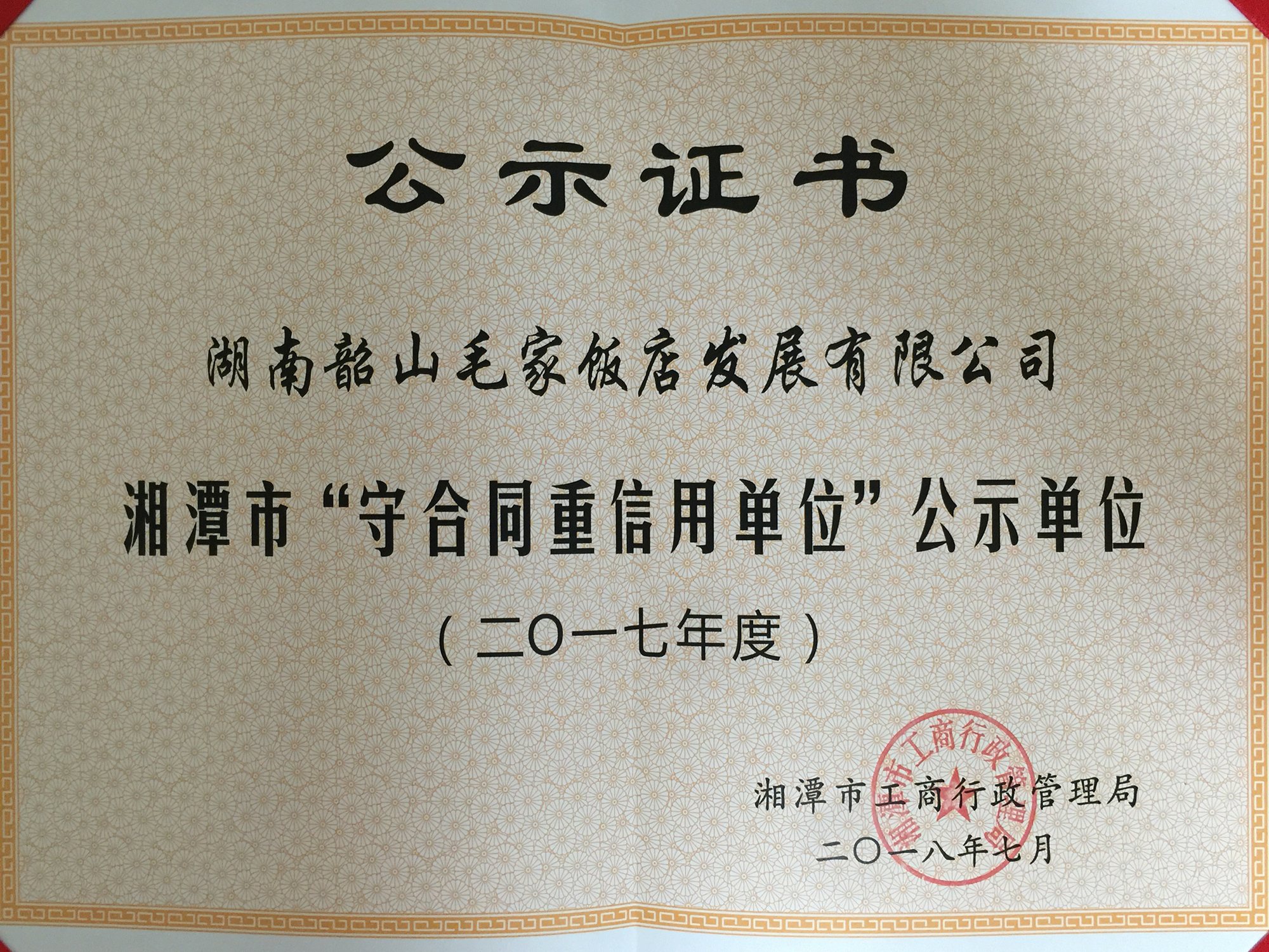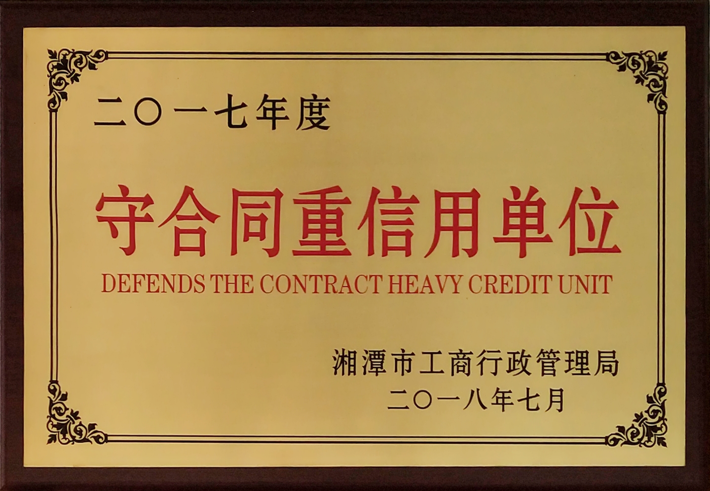 近期,從湘潭市工商行政管理局傳來喜訊,我司榮獲2017年度湘潭市“守合同重信用單位”稱號。
