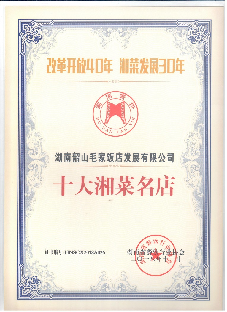 三十多年來,相繼被湖南省餐飲協(xié)會、中國烹飪協(xié)會、中國連鎖經(jīng)營協(xié)會等相關(guān)行業(yè)協(xié)會吸納為會員單位,并榮獲『中國特許連鎖百強』『中華餐飲名店』『全國綠色餐飲企業(yè)』『湘菜領(lǐng)軍企業(yè)』『紅色文化餐飲第一品牌』等諸多榮譽。