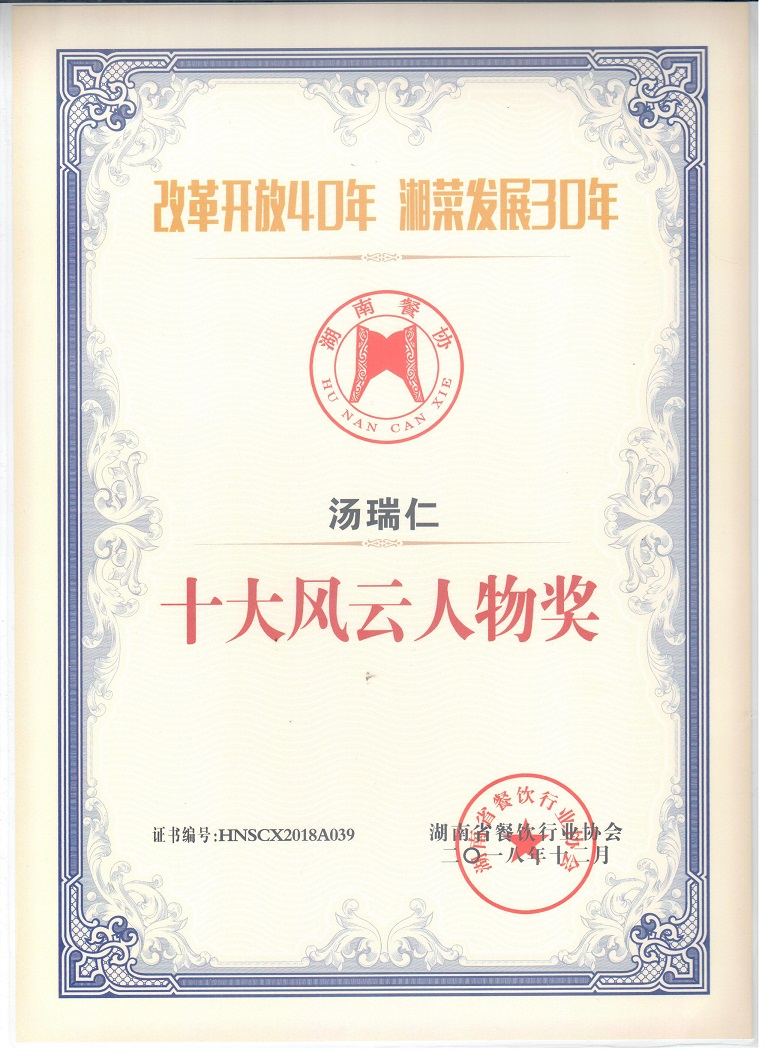 慶典現(xiàn)場,頒發(fā)了2018年度十大事件、年度十大人物、年度十大品牌、改革開放40年——湘菜發(fā)展30年終身成就獎等多個獎項,共計172人(品牌)獲獎。我司榮獲《十大湘菜名店獎》,湯瑞仁榮獲《十大風云人物獎》,夏小虎榮獲《突出貢獻獎》。