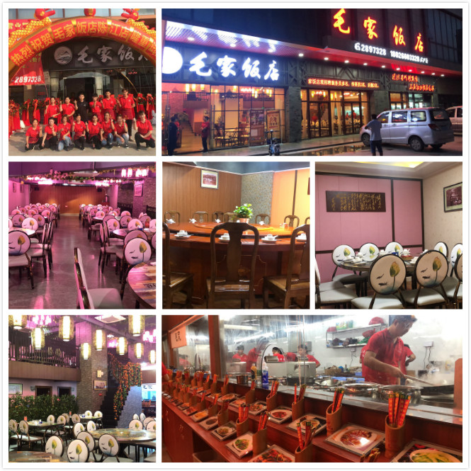惠州陳江毛家飯店于2019年8月6日隆重試業(yè)!飯店坐落于廣東省惠州市仲愷高新區(qū)陳江鎮(zhèn)仲愷六路75號,從樓面外部式樣、門頭,到內(nèi)部廳堂、包廂均按蘊(yùn)含毛家特色文化的風(fēng)格進(jìn)行了統(tǒng)一設(shè)計和裝飾,充分展示了多彩的毛家文化和濃烈的主席文化氛圍。