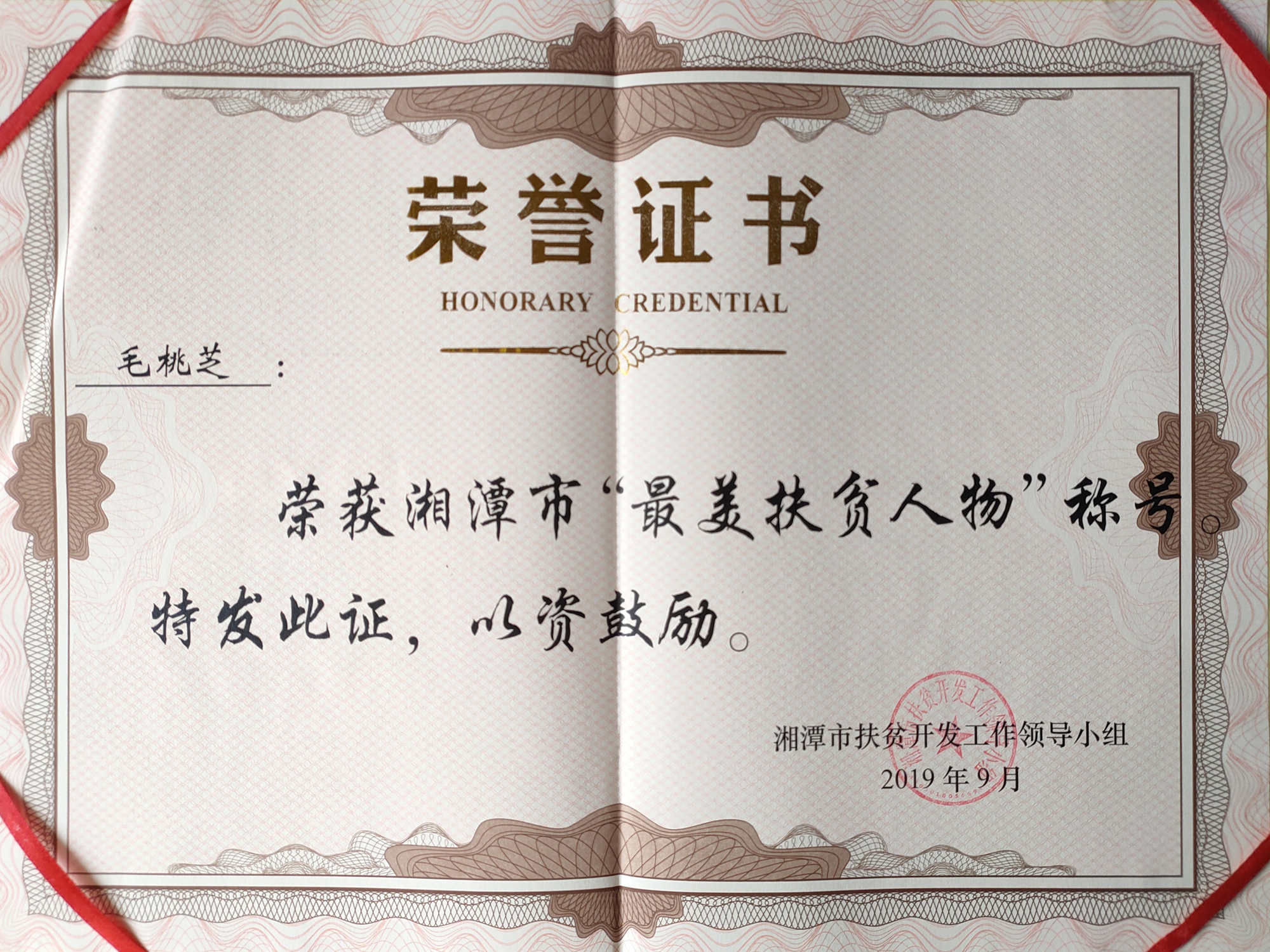 9月10日下午,湘潭市“脫貧攻堅、鄉(xiāng)村振興”專場文化宣傳活動暨“最美扶貧人物”和“脫貧之星”頒獎儀式在市廣電中心舉行。湖南韶山毛家飯店發(fā)展有限公司、韶山毛家食品有限公司董事長毛桃芝榮獲湘潭市“最美扶貧人物”稱號。