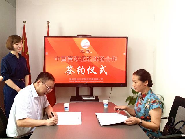 9月6日上午11點(diǎn)簽約儀式正式啟動(dòng),毛宇先生和趙蓓女士在仔細(xì)閱讀了簽約合同的具體款項(xiàng)之后,進(jìn)行了簽約,也宣告了毛家飯店與中國(guó)高鐵樞紐達(dá)成了正式的戰(zhàn)略合作。簽約結(jié)束,毛宇先生與趙蓓女士進(jìn)行握手、合影,并且與丁銀女士、羅然先生在大廳銅像前進(jìn)行了合影留念,記錄下了歷史性的時(shí)刻。