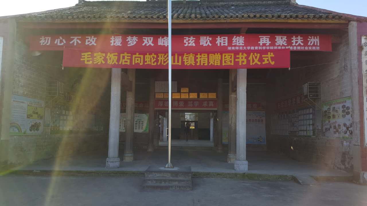 12月17日上午11時,毛家飯店向蛇形山鎮(zhèn)捐贈圖書儀式正式開始。婁底市十五所邊遠貧困學校的師生代表在雙峰縣蛇形山鎮(zhèn)撫州小學統(tǒng)一接受了捐贈。學生們除了領取到精神糧食之外,還領取到了毛家食品廠生產(chǎn)的毛家食品。