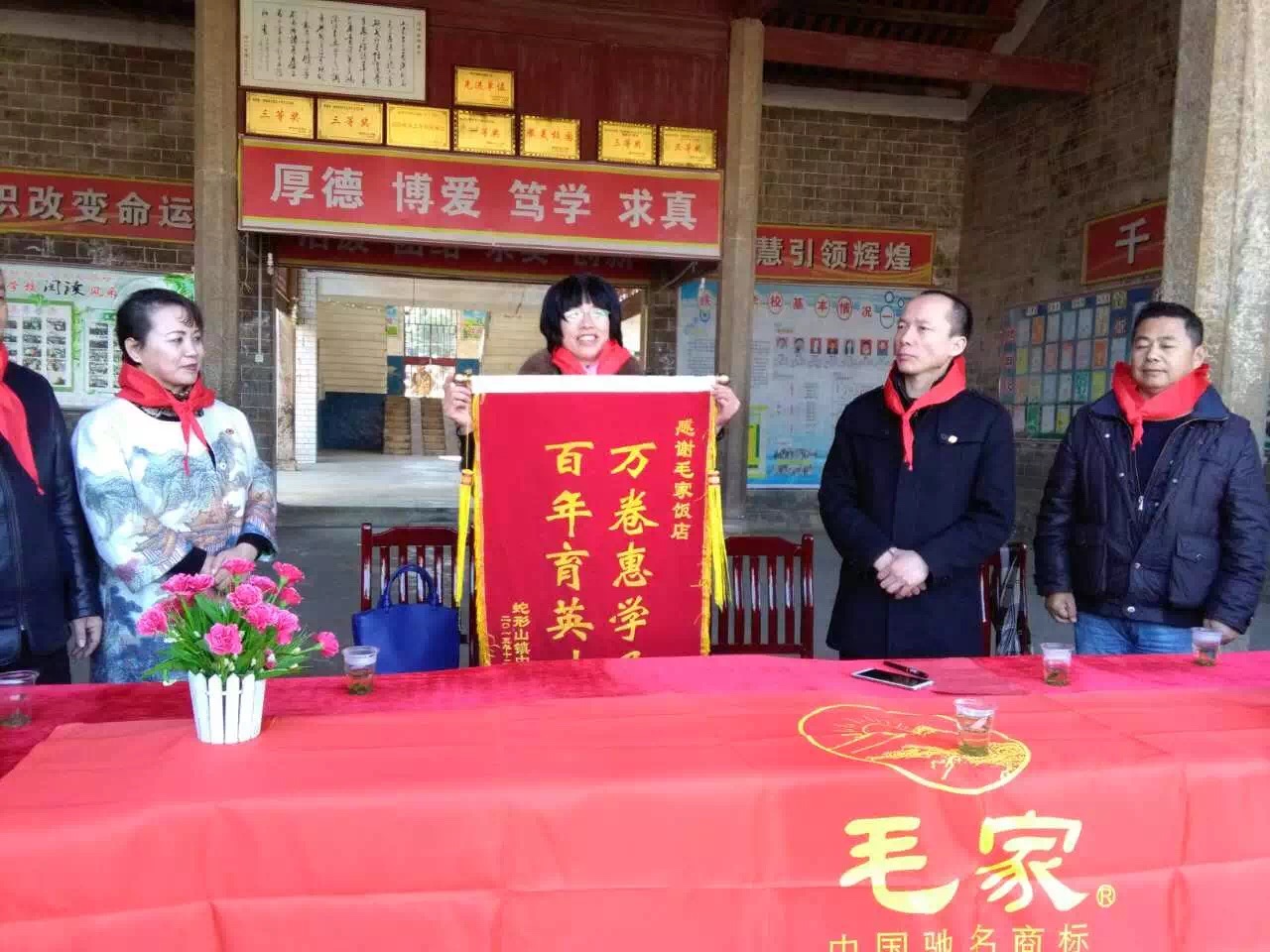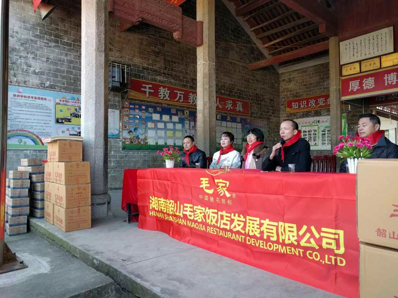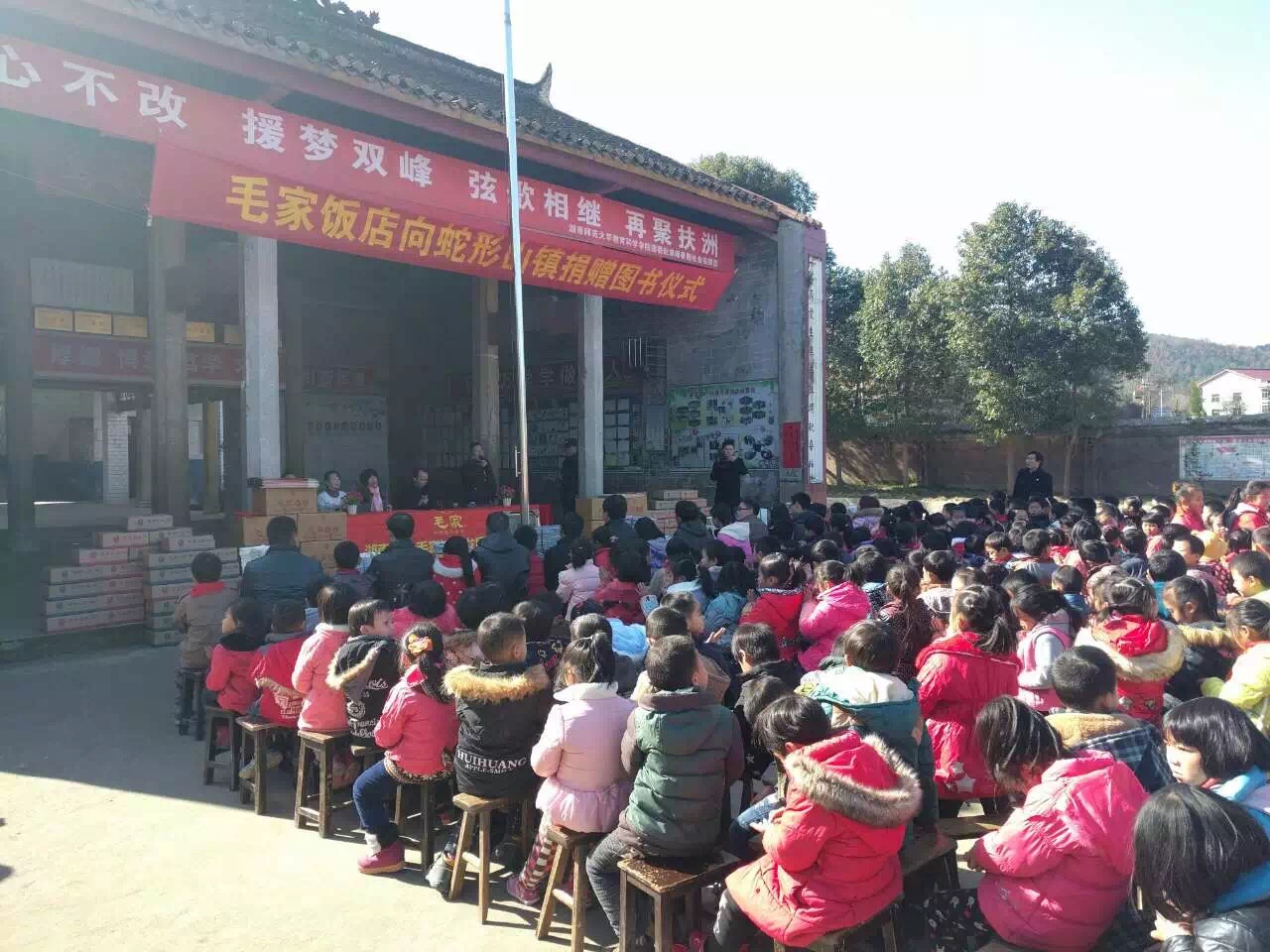 2015年12月17日,湖南韶山毛家飯店發(fā)展有限公司在董事長毛桃芝女士的帶領下為婁底十五所邊遠貧困學校捐贈了一萬多冊價值十多萬元的書籍,傳遞了對鄉(xiāng)村留守兒童的關愛,幫助那里的孩子圓了一個讀書的夢想。 由毛家飯店創(chuàng)始人湯瑞仁女士創(chuàng)辦的“毛家飯店扶貧教育基金”建立以來,每年向貧困山區(qū)發(fā)起了捐贈,至今累計已達兩百多萬元。