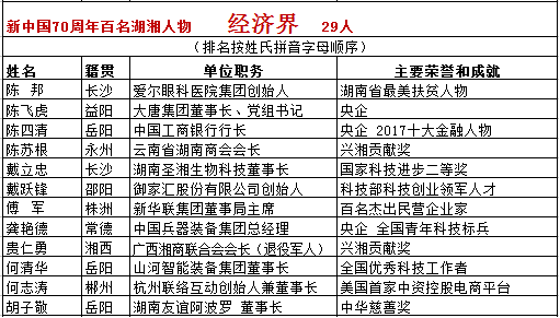 附:新中國70周年百名湖湘人物”經(jīng)濟(jì)界29名名單: