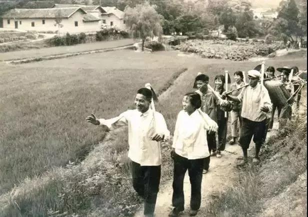 (湯瑞仁與韶山大隊黨支部書記毛迪秋帶領(lǐng)社員們出工)