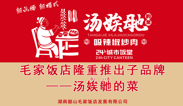 “湯娭毑的菜”以更年輕時尚的風(fēng)格點綴我們的生活?!皽珚謿驳牟恕笔且悦绎埖陝?chuàng)始人湯瑞仁為原型衍生的新生品牌,和藹可親的娭毑更能親近大眾,能夠引起消費者的情感共鳴。淳樸的家常味道,仿佛回到家鄉(xiāng),吃著娭毑做的一桌子我們愛吃的菜肴。