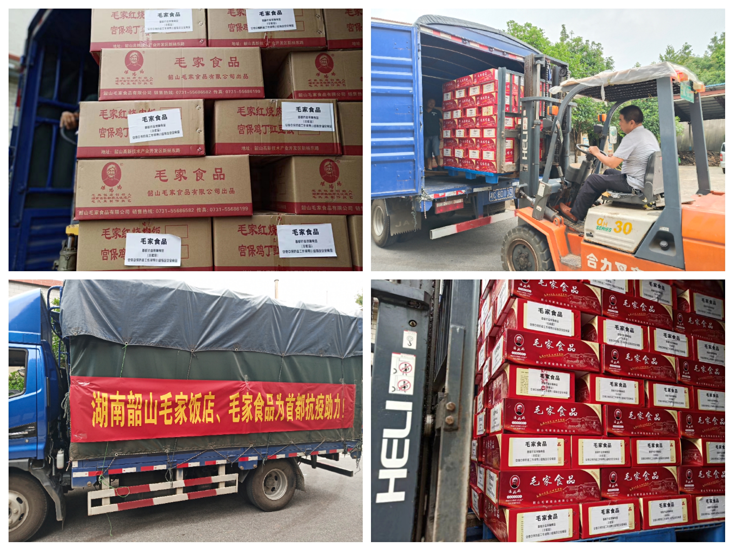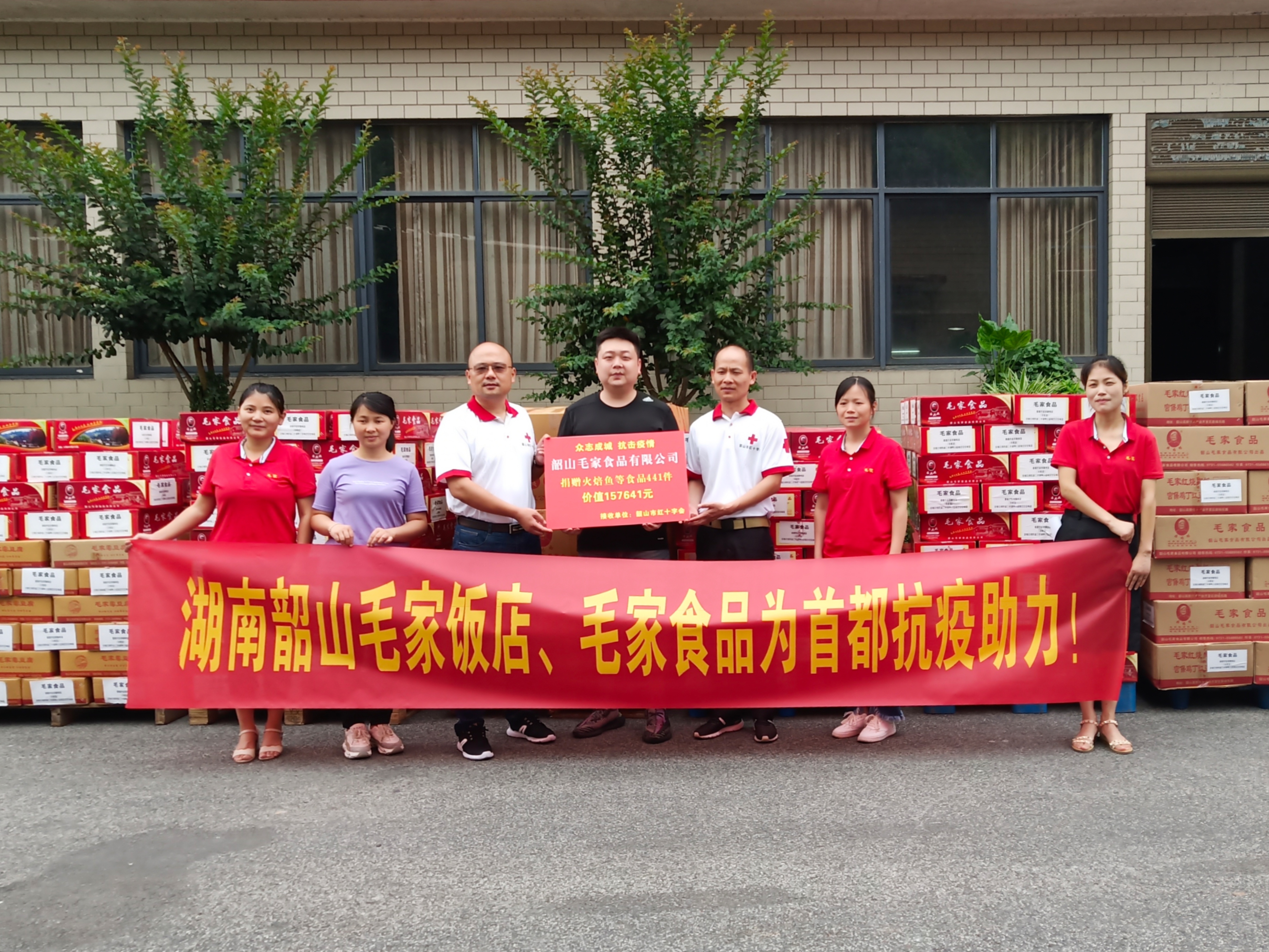 作為一家具有強烈社會責(zé)任感的湘菜企業(yè),毛家飯店雖然受疫情影響嚴(yán)重,但是始終沒有忘記所肩負的社會責(zé)任。疫情無情,人間有愛,就在7月8日上午,湖南韶山毛家飯店發(fā)展有限公司、韶山毛家食品有限公司通過韶山紅十字會向首都北京捐贈的400多件價值15萬余元的產(chǎn)品從公司出發(fā),馳援防疫一線,為首都抗擊疫情送去了滿滿的能量。