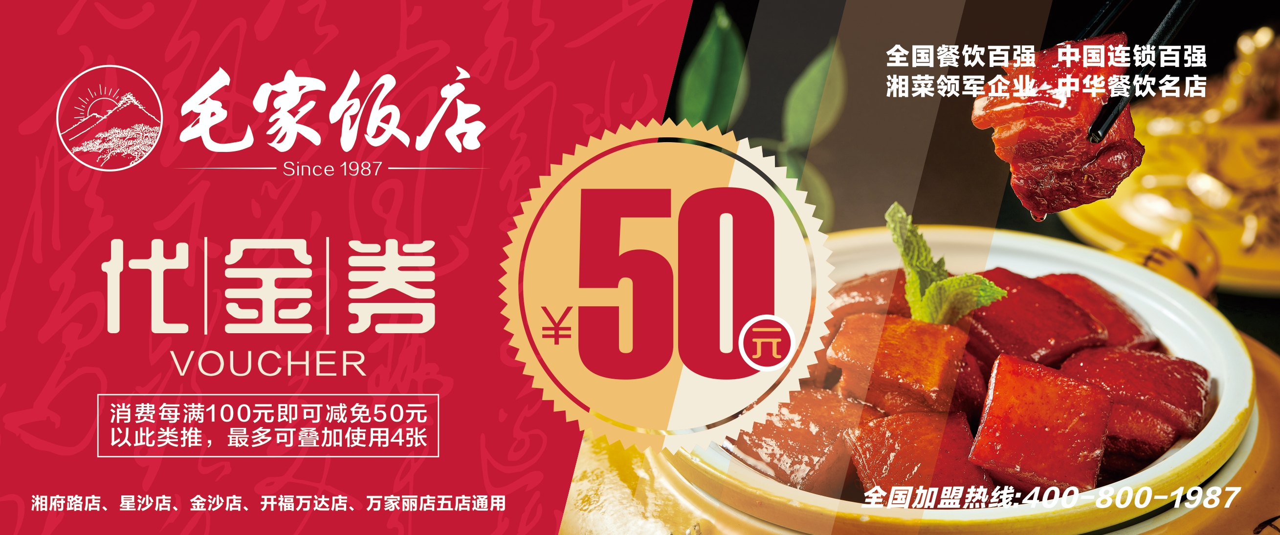 毛家紅燒肉是毛家飯店的經(jīng)典特色招牌菜,其口味深受大眾的喜愛,幾乎是每桌必點(diǎn)的菜肴,更是有很多外地客人前來湖南游玩時(shí),必來打卡的一道美食。如果你在現(xiàn)場(chǎng)沒吃過癮,或者還沒來得及試味,那就帶上“100-50”的代金券,來毛家飯店點(diǎn)上一份毛家紅燒肉吧~(代金券可找“橘紅大集”現(xiàn)場(chǎng)的小姐姐領(lǐng)取哦)