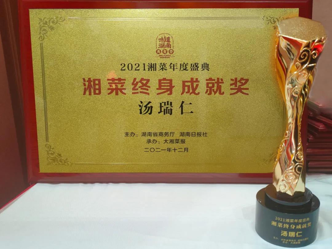“2021湘菜年度盛典”的現(xiàn)場(chǎng)發(fā)布了2021年度湘菜產(chǎn)業(yè)金椒獎(jiǎng)——“年度人物”、“終身成就獎(jiǎng)”、“年度新聞事件”、“年度湘廚”等行業(yè)榮譽(yù)。『毛家飯店』創(chuàng)始人湯瑞仁女士榮獲“2021湘菜終身成就獎(jiǎng)”。