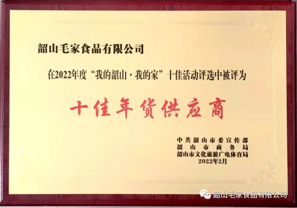 同時(shí)在此次活動(dòng)中,韶山毛家食品有限公司還被評為“十佳年貨供應(yīng)商”。
