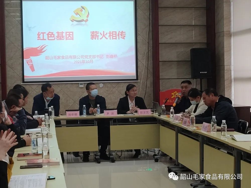 10月26日下午,湘潭市食品行業(yè)協(xié)會黨支部、偉鴻食品股份有限公司黨支部、韶山毛家食品有限公司黨支部聯(lián)合開展主題黨日活動。湘潭市工信局食品科科長羅起、湘潭市岳塘經(jīng)開區(qū)兩新組織黨委專職副書記彭文藝、湘潭市食品行業(yè)協(xié)會黨支部書記劉冬明以及食品行業(yè)協(xié)會各企業(yè)黨支部書記及黨員代表30余人參加了此次以“薪火傳承耀百年”為主題的黨日活動。
