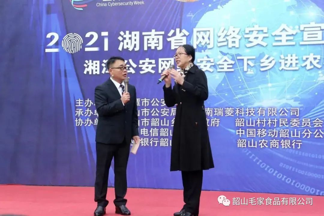 近日,按照省公安廳的統(tǒng)一部署,“2021年國家網(wǎng)絡(luò)安全宣傳周”法治日——“網(wǎng)絡(luò)安全下鄉(xiāng)進(jìn)農(nóng)村”湘潭現(xiàn)場活動在韶山市韶山?jīng)_村舉行。毛家集團(tuán)董事長毛桃芝被聘為韶山市反電詐公益宣傳大使。