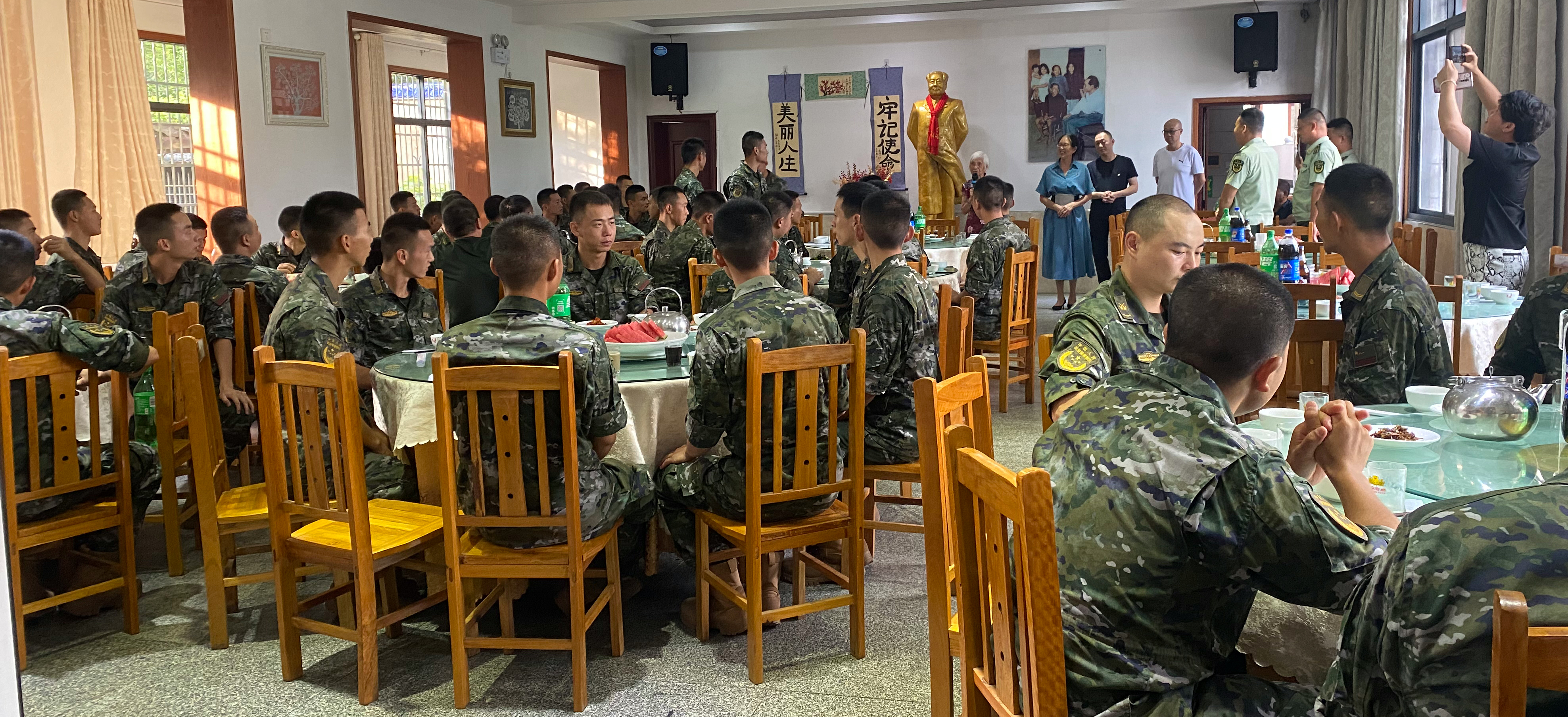 8月1日,建軍95周年,『毛家飯店』創(chuàng)始人湯瑞仁老人邀請駐韶部隊武警官兵和消防指戰(zhàn)員來韶山總店團聚。毛家飯店精心制作了豐富佳肴,雖然都是一些家常菜,卻飽含著濃濃的愛黨擁軍情,讓這群“最可愛的人”在韶山這片紅色土地上有種“家”的感覺,并代表毛家人向他們致以崇高的敬意,祝人民子弟兵節(jié)日快樂!
