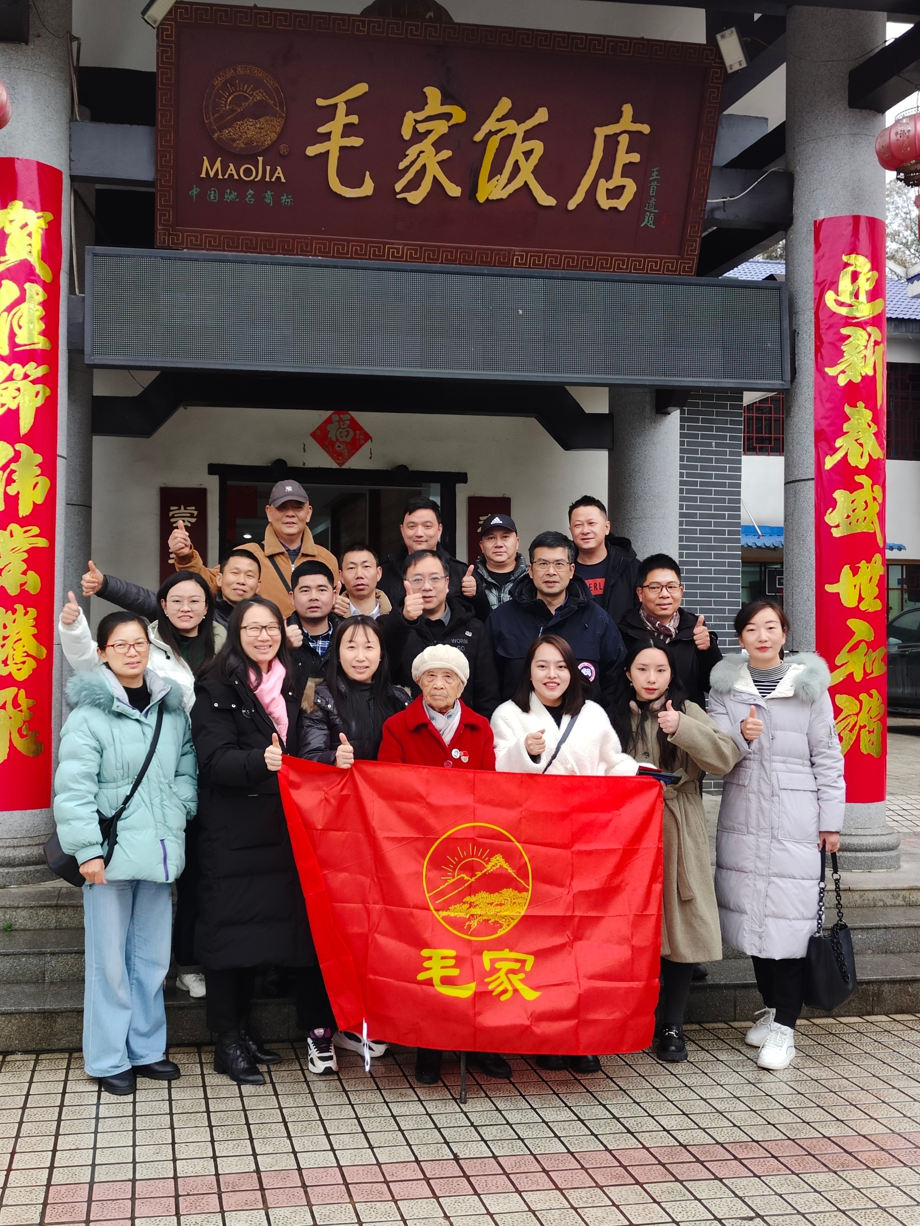 2023年2月13日,湖南韶山毛家飯店有限公司員工在董事長毛宇先生的帶領(lǐng)下,回到了毛家飯店韶山總店。給慈愛的創(chuàng)始人——湯瑞仁奶奶拜完年后,毛家人開始了一天的韶山參觀、學習之旅。