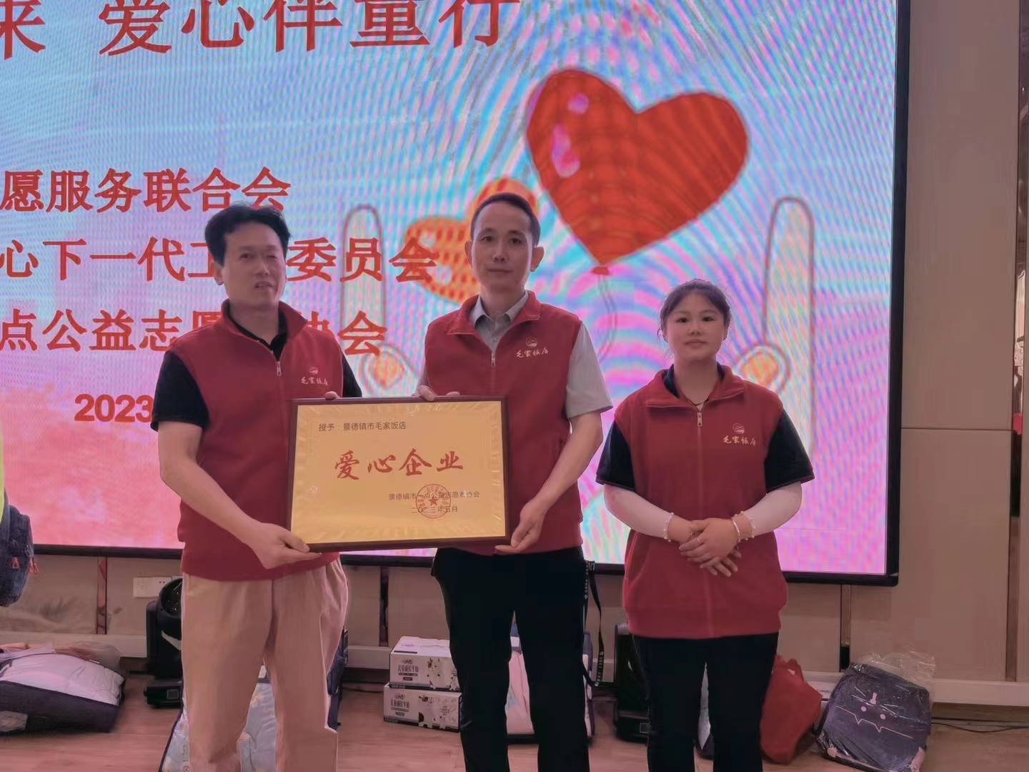 毛家報刊6月1日訊(本報記者 李鋼 通訊員 鄒倩)江西景德鎮(zhèn)毛家飯店榮獲江西景德鎮(zhèn)市關(guān)心下一代工作委員會頒發(fā)的2023景德鎮(zhèn)“愛心企業(yè)”榮譽(yù)。