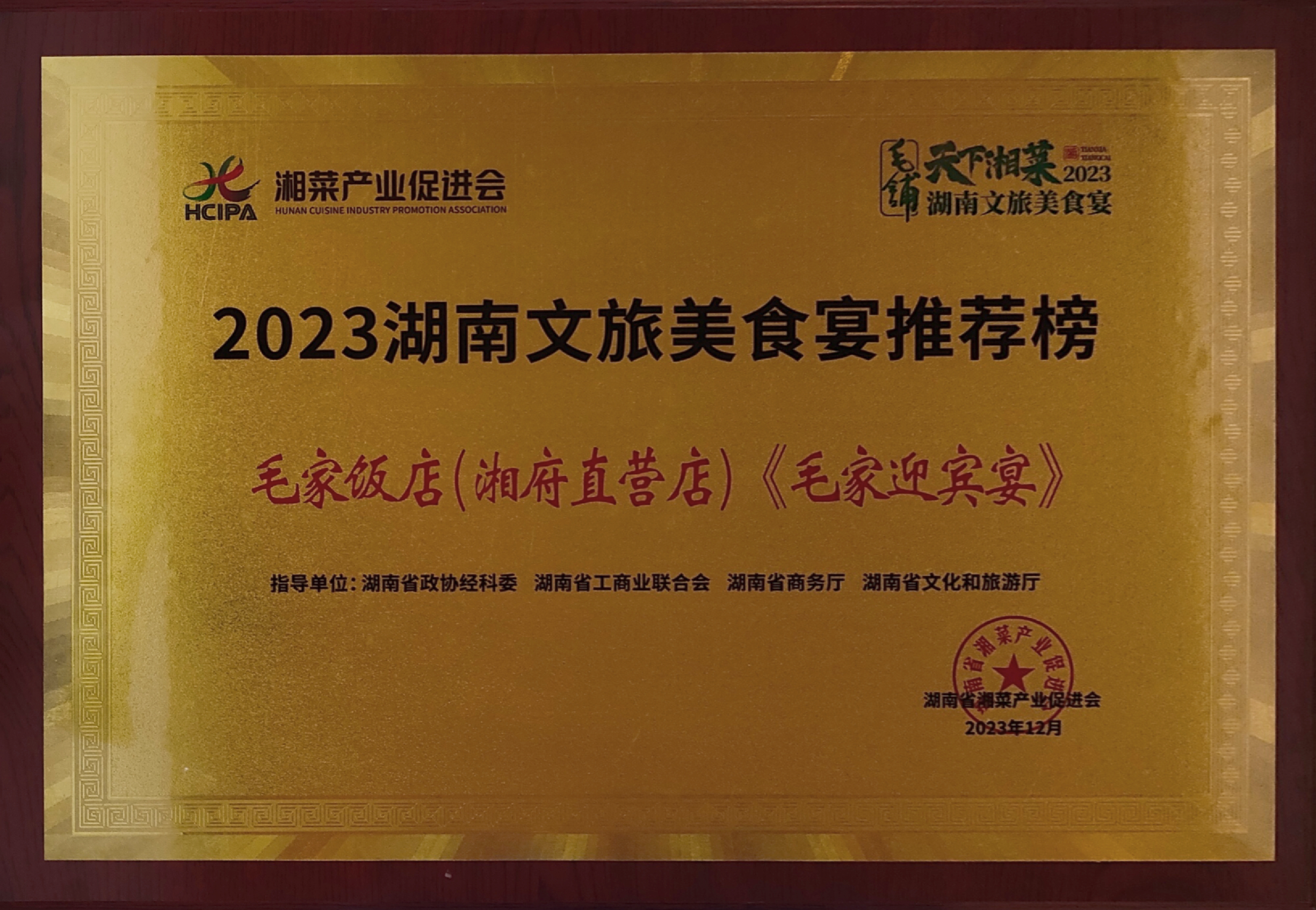 毛家飯店【湘府直營店】在本次盛典中獲得了2024湖南文旅美食宴百強推薦榜的榮譽,這無疑是對『毛家飯店』在湘菜產(chǎn)業(yè)中的杰出貢獻和 持續(xù)創(chuàng)新的肯定。