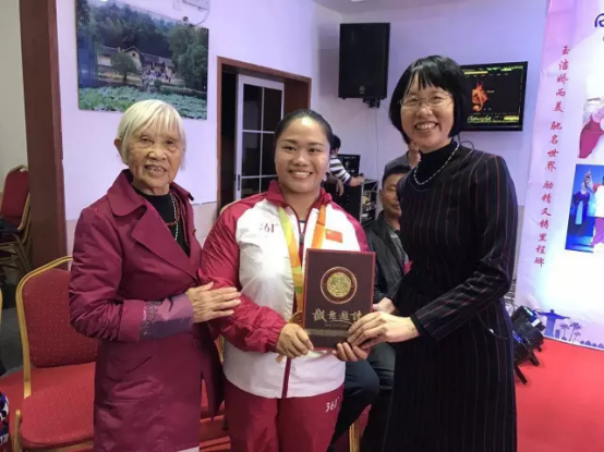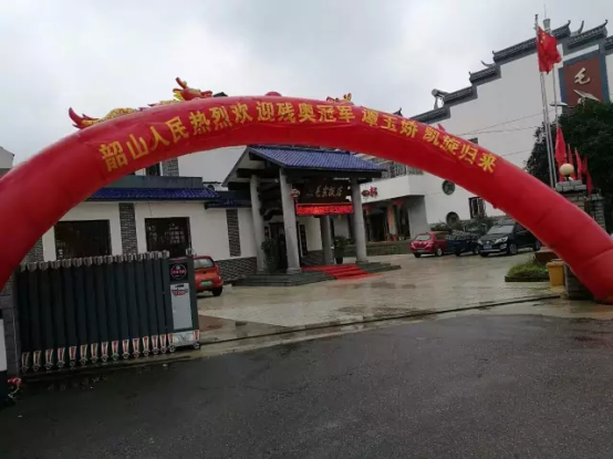 2016年9月29日,瑟瑟秋風(fēng)夾雜著小雨,但阻擋不了冠軍回家的激切心情。韶山毛家飯店張燈結(jié)彩,迎來了從里約殘奧會歸來的舉重冠軍譚玉嬌。