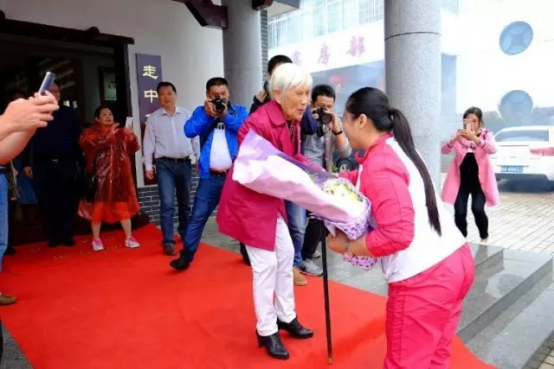 整個毛家飯店熱鬧非凡,鄉(xiāng)親們從四面八方涌來。韶山市的相關(guān)領(lǐng)導(dǎo),十五、十六、十七、十八大黨代表毛雨時和眾多鄉(xiāng)親都慕名前往看望冠軍譚玉嬌,一睹她的英姿。毛家飯店創(chuàng)始人湯瑞仁奶奶更是格外興奮,見玉嬌迎面走近,她松開時刻不離的枴杖,為玉嬌送上鮮花,并張開雙臂一把把玉嬌擁抱在懷中,口里念念有詞地說:“你是殘疾人,你好了不起!我也是殘疾人,我要向你學(xué)習(xí)!”之后,很風(fēng)趣地對玉嬌說:“你是右腳我是左腳,我倆拼在一起就很完美了哦!”