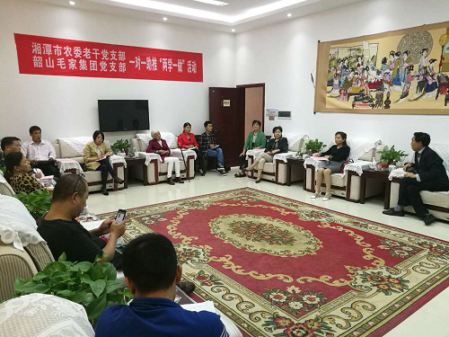 會上,韶山毛家集團(tuán)董事長毛桃芝女士向與會老同志介紹了毛家集團(tuán)的成長史,帶領(lǐng)大家參觀了產(chǎn)品展示館。韶山毛家集團(tuán)創(chuàng)史人、87歲高齡的老黨員、老模范湯瑞仁老人全程參加了此次活動。此次活動正直“兩學(xué)一做”進(jìn)入 “重品行、作表率”學(xué)習(xí)教育階段,湯瑞仁老人作為湘潭市道德模范的典范,一直是大家學(xué)習(xí)的榜樣。她從一元七毛錢起家,靠自己的勤勞、智慧、堅(jiān)忍不拔的頑強(qiáng)意志及好學(xué)上進(jìn)不服輸?shù)钠床?,由一名村婦成長為一名民營企業(yè)家,而且致富后時刻牢記毛主席“全心全意為人民服務(wù)”的宗旨,將自己獲得的財富主動回報社會,至今培養(yǎng)了2700多名貧困學(xué)生,送他們上學(xué),把他們培養(yǎng)成對社會有用的人才的感人事跡深深打動和感染了每一個參加活動的黨員同志們。通過活動,兩個支部相互學(xué)習(xí)、相互交流、相互借鑒,為深化“兩學(xué)一做”學(xué)教活動奠定了好的基礎(chǔ)。
