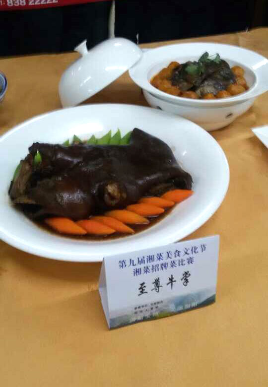 毛家香樟旗艦店總廚黃斌先生推選的“至尊牛掌”被美食文化節(jié)評(píng)為“金牌招牌菜”?!爸磷鹋U啤边x用牛小腿為原料,具有色澤紅潤(rùn)、軟糯適口、成品大氣等特點(diǎn),還具有美容養(yǎng)顏之功效。