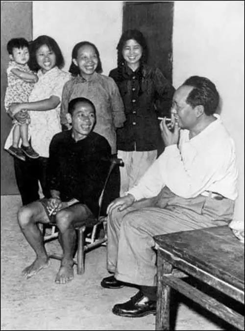 我們在毛家飯店都看到過一張著名的照片——1959年毛澤東到湯瑞仁家里做客是合影。那年毛澤東重回韶山,祭完祖就到處串門來到湯瑞仁家里。湯瑞仁讓3歲的兒子毛命軍叫毛澤東“爺爺”。毛澤東不同意,說這樣輩分顛倒了,“按輩分,我要叫你兒子‘叔叔’,叫你‘娭毑’。古話都講了,‘搖車里的爺爺拄拐棍的孫子’嘛!”湯瑞仁聽了感動得掉下眼淚,鄉(xiāng)親們哄笑一堂。攝影師快門一按,“毛澤東與他的鄉(xiāng)親們”就定格在那個歷史瞬間。
