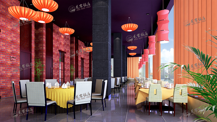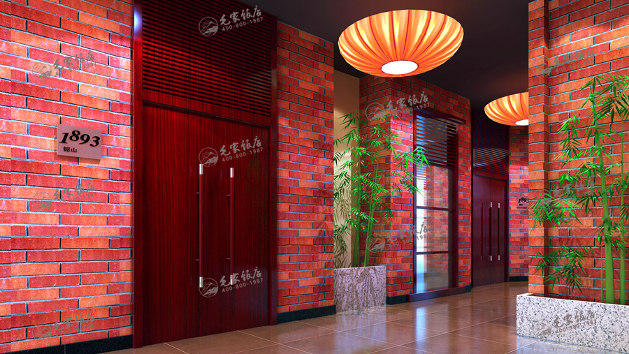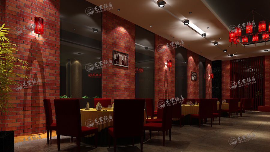毛家飯店歷經(jīng)三十余年的發(fā)展,在空間設(shè)計上也經(jīng)過了幾個版本,從最初的具有韶山地方風(fēng)情的民俗版,在后的新概念版都是根據(jù)市場的需求而專項設(shè)計的。 紅磚,灰墻,青竹,紅燈……,毛家的文化空間包容了簡約的現(xiàn)代元素和時尚氣息,也融合了濃厚的毛家紅色文化,使消費(fèi)者的感性度對毛家有的認(rèn)知和升華,同時也營造了一份雅俗相融的文化特色空間。