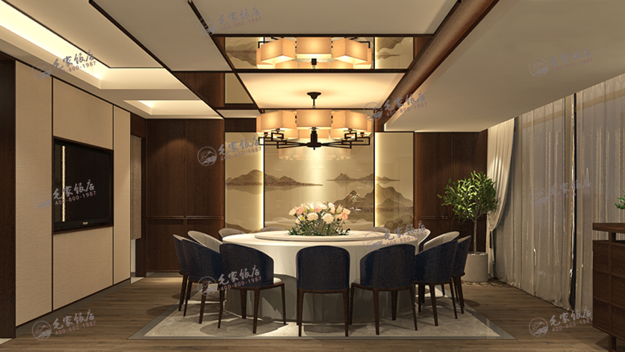 以現(xiàn)代中式風(fēng)格為主,點(diǎn)綴以綠植為主,打造舒適商務(wù)氛圍,為前來消費(fèi)的顧客提供一個舒適有檔次的就餐環(huán)境。