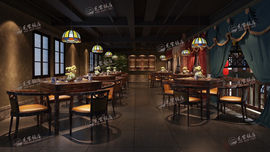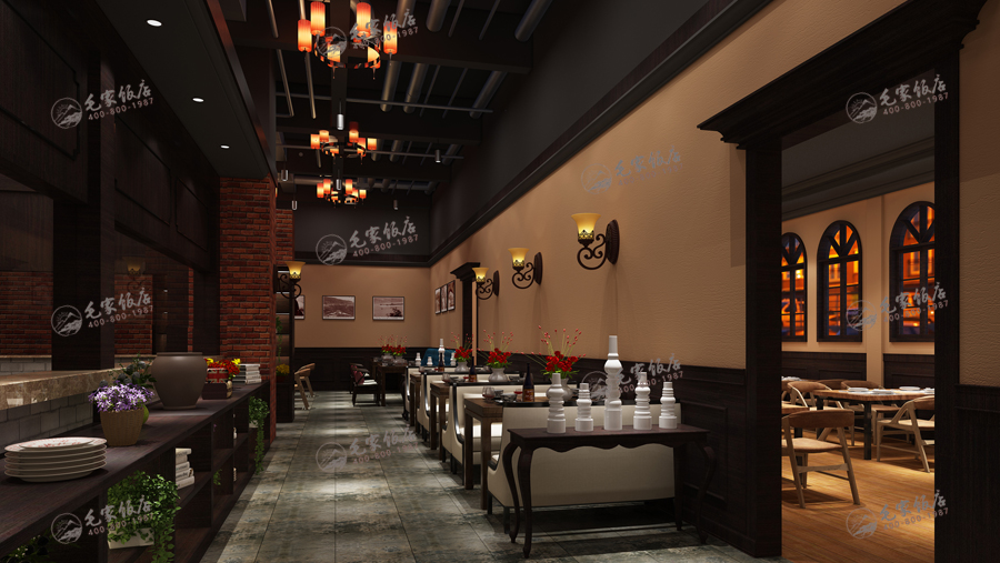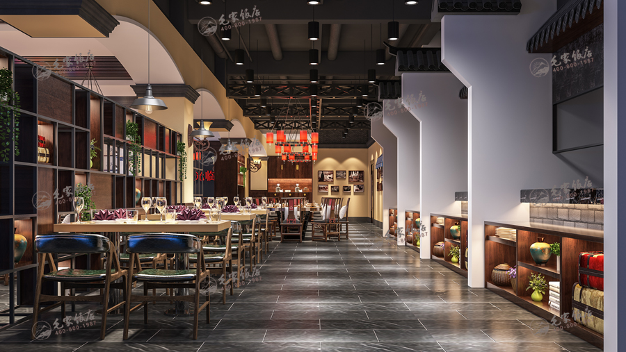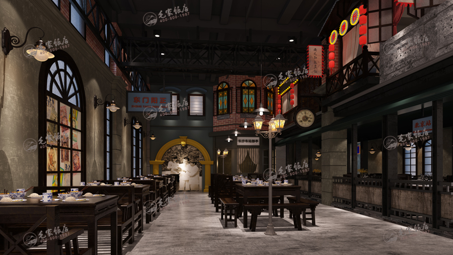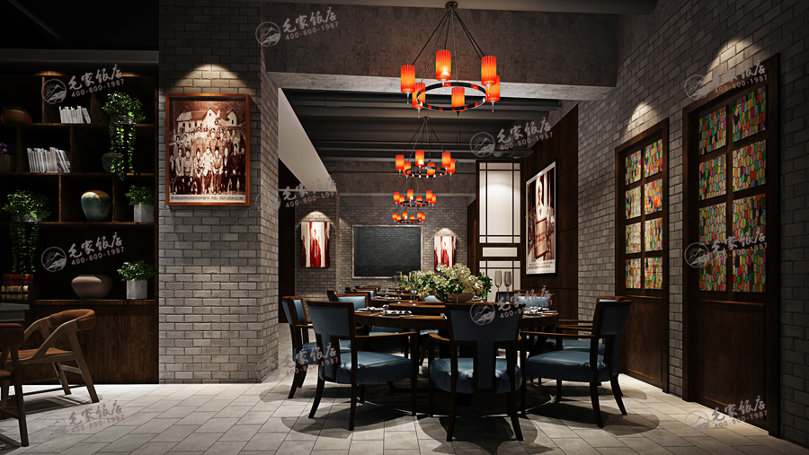 民國版是最近兩年流行的設(shè)計版本,整體環(huán)境偏暗目的是營造相對舒適輕松的就餐環(huán)境,借鑒傳統(tǒng)的中式民居特點(diǎn)的基礎(chǔ)上,保留傳統(tǒng)中式民居和街道特征,并融入現(xiàn)代裝飾風(fēng)格和元素打造的風(fēng)格元素,目的營造一種解放前的懷舊氛圍。