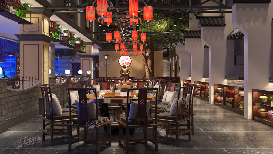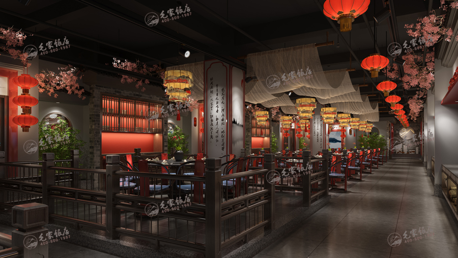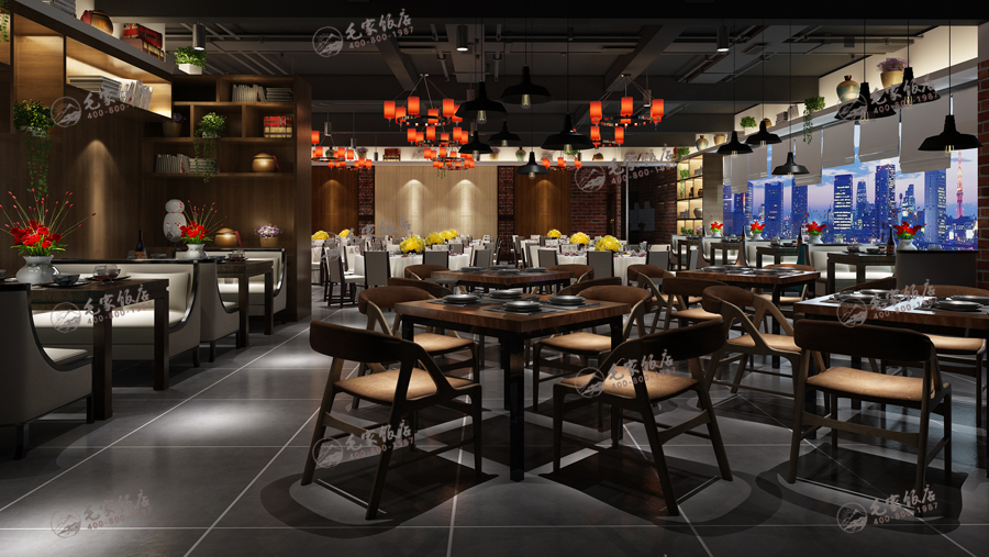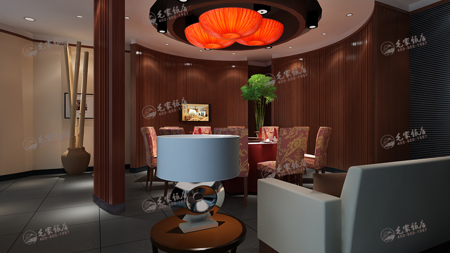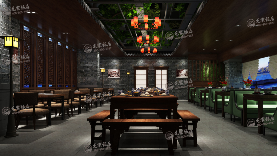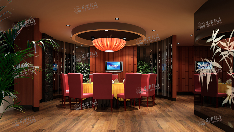 毛家飯店總部會為各門店量身制作版本設(shè)計圖及施工圖,保證各門店的裝修風(fēng)格統(tǒng)一性,并為各門店輸出專業(yè)的設(shè)計與裝修監(jiān)理人員,避免各店在裝修上的成本浪費(fèi)。在傳統(tǒng)的空間裝修同時,毛家還專門設(shè)立了軟裝部,門店在硬裝結(jié)束后,軟裝的營造會為整個就餐空間富有更強(qiáng)的觀賞性。