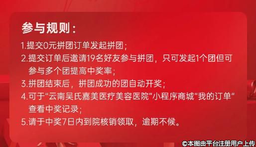 昆明吳氏嘉美拼團(tuán)活動 20人成團(tuán)0元抽好禮