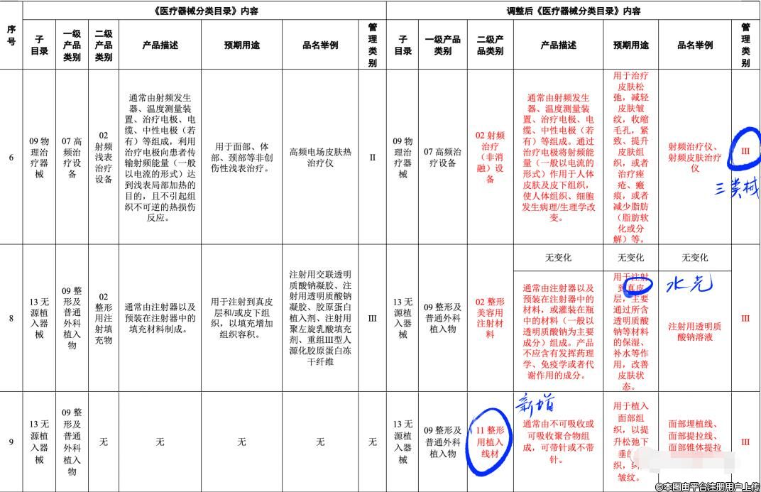 醫(yī)療器械分類目錄調(diào)整:三品類涉醫(yī)美