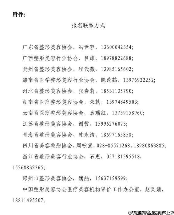 中國(guó)整形美容協(xié)會(huì)醫(yī)療美容機(jī)構(gòu)評(píng)價(jià)工作辦公室,趙昊婧,18811495507。