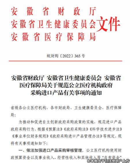 此次安徽是動(dòng)真格了,直接提前法出通知,明確提出,公立醫(yī)療機(jī)構(gòu)使用財(cái)政預(yù)算資金以及事業(yè)收入、經(jīng)營性收入和其他收入等“自有資金”開展采購活動(dòng),應(yīng)當(dāng)嚴(yán)格執(zhí)行政府采購關(guān)于進(jìn)口審核的有關(guān)規(guī)定。單項(xiàng)或批量采購預(yù)算達(dá)到政府采購分散采購限額標(biāo)準(zhǔn),確需采購進(jìn)口產(chǎn)品的,實(shí)行審核管理。