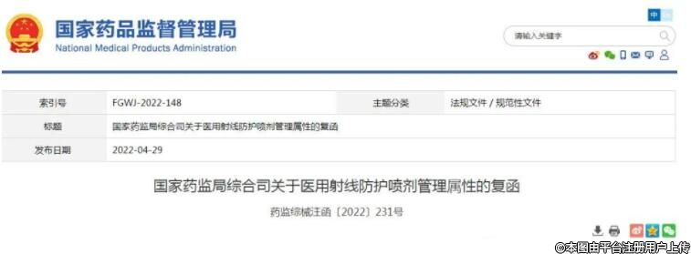 國(guó)家藥監(jiān)局:醫(yī)用射線防護(hù)噴劑按第二類醫(yī)療器械管理