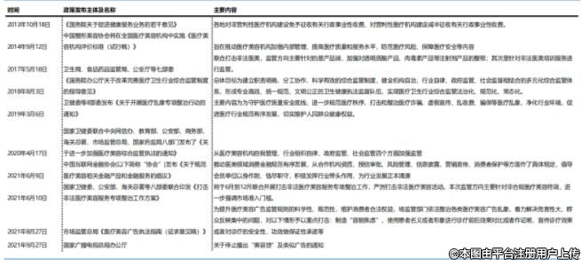 2021年8月開始,監(jiān)管力度升級(jí),針對(duì)醫(yī)美產(chǎn)品、機(jī)構(gòu)、營銷宣傳渠道等各環(huán)節(jié)實(shí)行了全方位整頓,對(duì)行業(yè)開始形成實(shí)質(zhì)性較大影響,2022年醫(yī)美行業(yè)邁入合規(guī)發(fā)展時(shí)代。