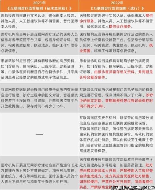 此次《細則》要求確保醫(yī)師本人接診,其他人員、人工智能軟件等不得冒用、替代醫(yī)師本人接診?!墩髑笠庖姼濉穼?ldquo;接診”改為“提供診療服務”,可以涵蓋線上診療的所有環(huán)節(jié),包括接診后的診斷、開方等等;診療服務由醫(yī)生本人提供,是醫(yī)療安全的重要保障。