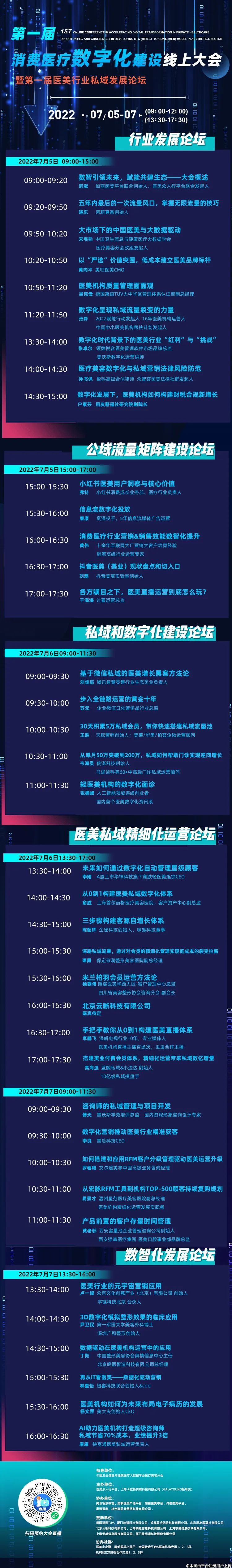 在后疫情時代,我國政府正大力推進內(nèi)循環(huán),以實現(xiàn)經(jīng)濟需求復(fù)蘇。醫(yī)美作為新時代下崛起的新消費品類,正成為推動經(jīng)濟復(fù)蘇的重要“抓手”。與此同時,疫情加速了醫(yī)美服務(wù)線上化進程。本次消費醫(yī)療數(shù)字化建設(shè)線上大會旨在打造大醫(yī)美時代新趨勢和新局面下的消費醫(yī)療數(shù)智化運營交流和分享平臺,助力醫(yī)美機構(gòu)數(shù)智化運營轉(zhuǎn)型升級,共建醫(yī)美行業(yè)良性生態(tài)。