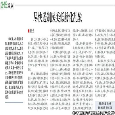 中國消費者報:盡快遏制醫(yī)美低齡化亂象