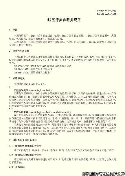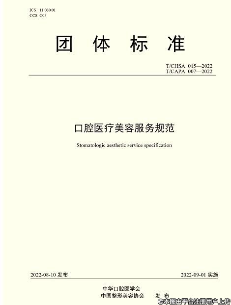 《口腔醫(yī)療美容服務(wù)規(guī)范》團(tuán)體標(biāo)準(zhǔn)自2022年9月1日起正式實(shí)施