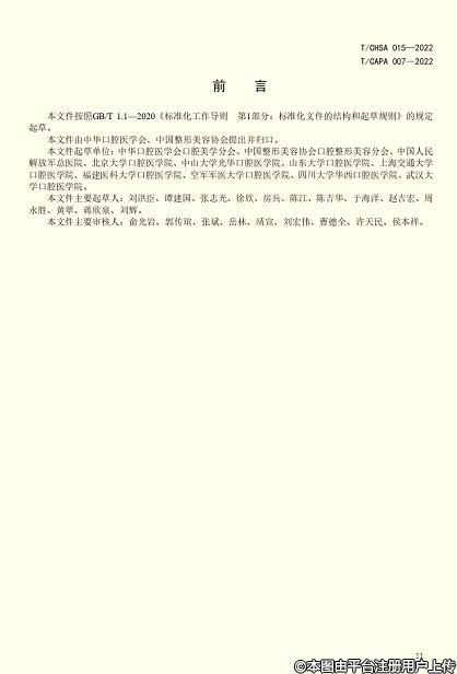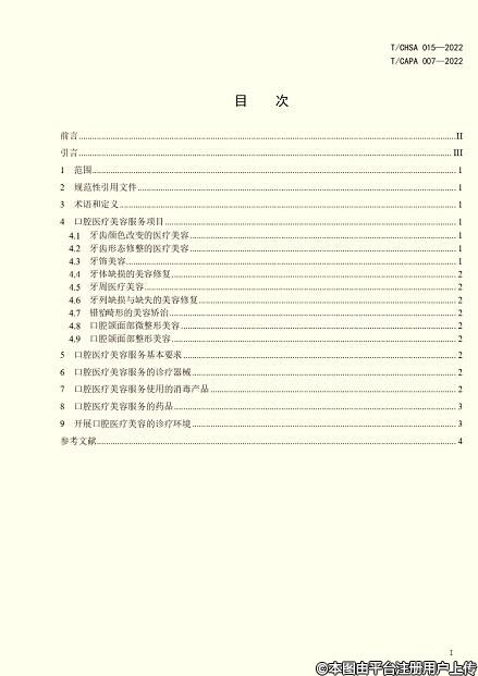 8月10日,中國(guó)整形美容協(xié)會(huì)和中華口腔醫(yī)學(xué)會(huì)聯(lián)合發(fā)布團(tuán)體標(biāo)準(zhǔn)《口腔醫(yī)療美容服務(wù)規(guī)范》(標(biāo)準(zhǔn)編號(hào): T/CHSA 015—2022、T/CAPA 007-2022)。此標(biāo)準(zhǔn)系根據(jù)《中國(guó)整形美容協(xié)會(huì)標(biāo)準(zhǔn)化工作管理辦法》的相關(guān)規(guī)定編寫(xiě),將從2022年9月1日起正式實(shí)施?!犊谇会t(yī)療美容服務(wù)規(guī)范》團(tuán)體標(biāo)準(zhǔn)內(nèi)容如下: