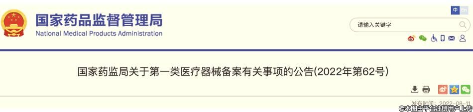 ▲NMPA對外發(fā)布《關(guān)于第一類醫(yī)療器械備案有關(guān)事項的公告(2022年第62號)》(圖源:《NMPA)