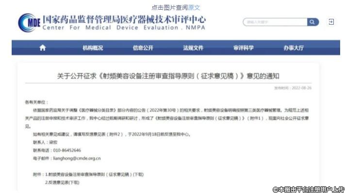 國家器審中心發(fā)布[射頻美容設(shè)備注冊審查指導原則(征求意見稿)]