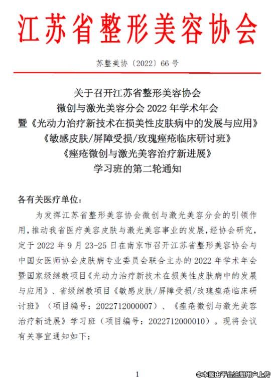 江蘇省整形美容協(xié)會微創(chuàng)與激光美容分會2022年學(xué)術(shù)年會文件