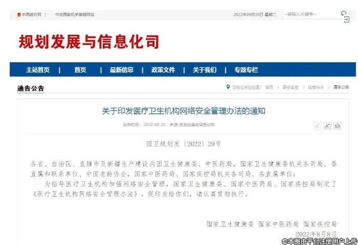三部門(mén)印發(fā)《關(guān)于印發(fā)醫(yī)療衛(wèi)生機(jī)構(gòu)網(wǎng)絡(luò)安全管理辦法的通知》