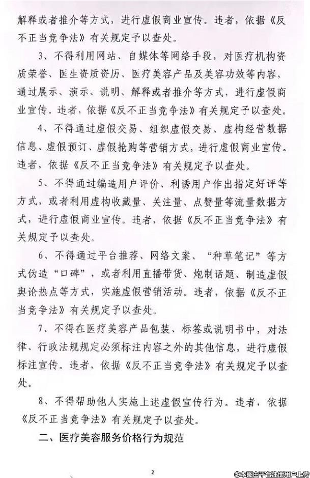 1、不得利用會(huì)議、講座、電話、健康咨詢、上門推銷等途徑,對醫(yī)療美容機(jī)構(gòu)資質(zhì)榮譽(yù)、醫(yī)生資質(zhì)資歷、醫(yī)療美容產(chǎn)品及美容功效等內(nèi)容,通過展示、演示、說明、解釋或者推介等方式,進(jìn)行虛假商業(yè)宣傳。違者,依據(jù)《反不正當(dāng)競爭法》有關(guān)規(guī)定予以查處。