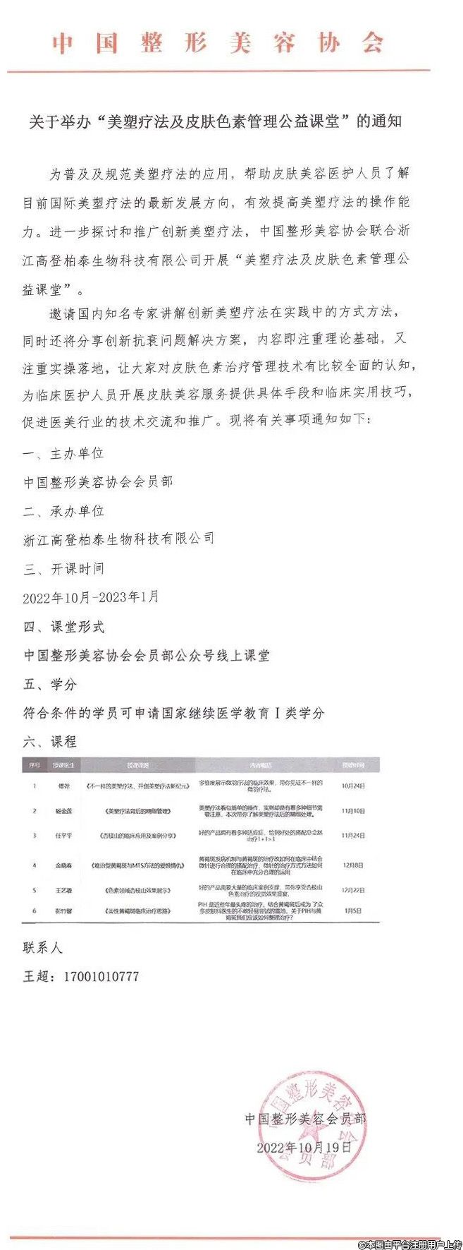 為普及及規(guī)范美塑療法的應(yīng)用,幫助皮膚美容醫(yī)護人員了解目前國際美塑療法的最新發(fā)展方向,有效提高美塑療法的操作能力。進一步探討和推廣創(chuàng)新美塑療法,中國整形美容協(xié)會聯(lián)合浙江高登柏泰生物科技有限公司開展“美塑療法及皮膚色素管理公益課堂”。