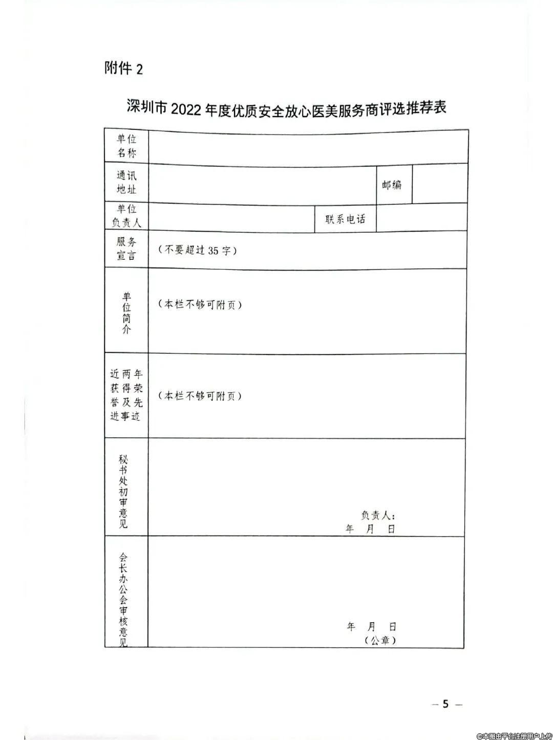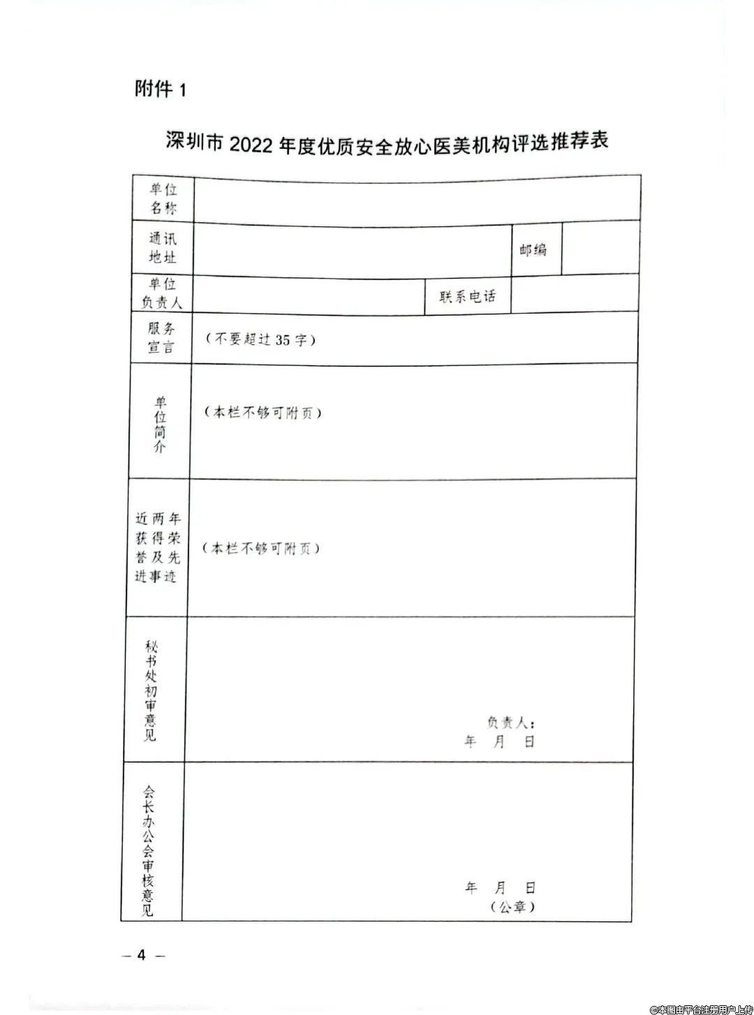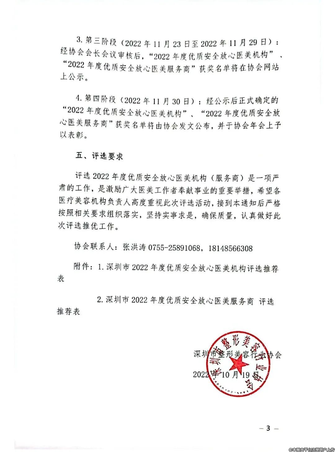 附件:1.深圳市2022年度優(yōu)質(zhì)安全放心醫(yī)美機構(gòu)評選推薦表