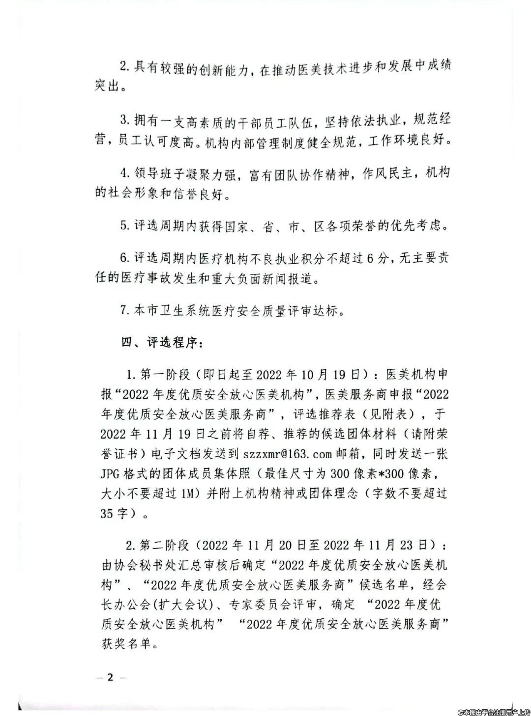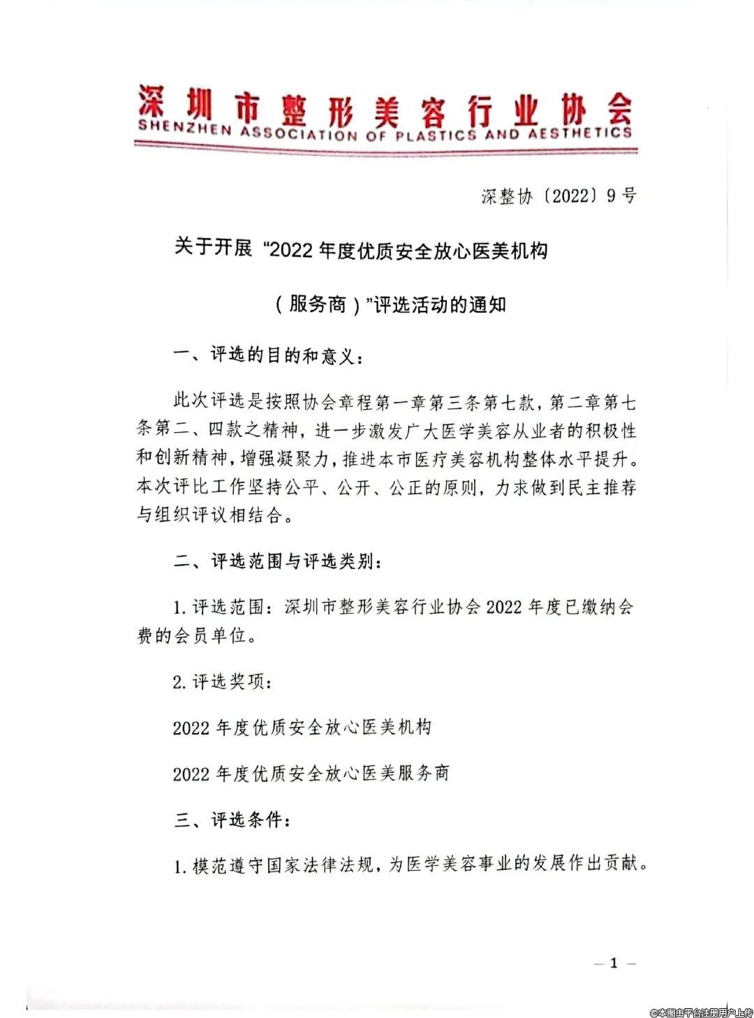 1.評選范圍:深圳市整形美容行業(yè)協(xié)會2022年度已繳納會費的會員單位。