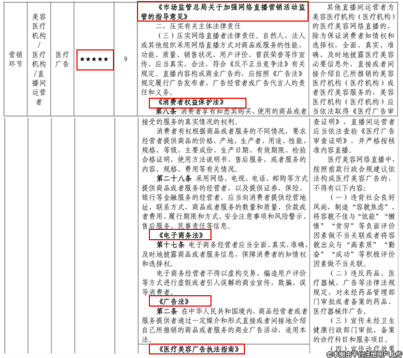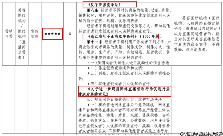 內(nèi)容概括:第8點(diǎn)主要表達(dá)宣傳管理的涉及范圍,舉例,國家《反不正當(dāng)競爭法》及《浙江省反不正當(dāng)競爭條例》(2000年版)的詳細(xì)條款進(jìn)行說明及相關(guān)約束。同時(shí),強(qiáng)調(diào)《關(guān)于進(jìn)一步規(guī)范網(wǎng)絡(luò)直播營利行為促進(jìn)行業(yè)健康發(fā)展的意見》雙重要求,確保醫(yī)美直播信息作真實(shí)的商業(yè)宣傳,不得欺騙、誤導(dǎo)消費(fèi)者。